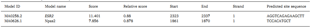 之前研究表明CYP19A1在牛的GCs中表达,而在鸡的TCs中表达。通过计算这两个物种GCs和TCs中差异表达基因(DEGs),将其与JASPAR网站预测转录因子进行比对,最终获得两个可能的转录因子ESR2和Npase2(表2)。结合WGCNA分析得到的鸡的与CYP19A1表达相关的关键基因(表1)也包含ESR2,最终认为ESR2是CYP19A1潜在调控因子。