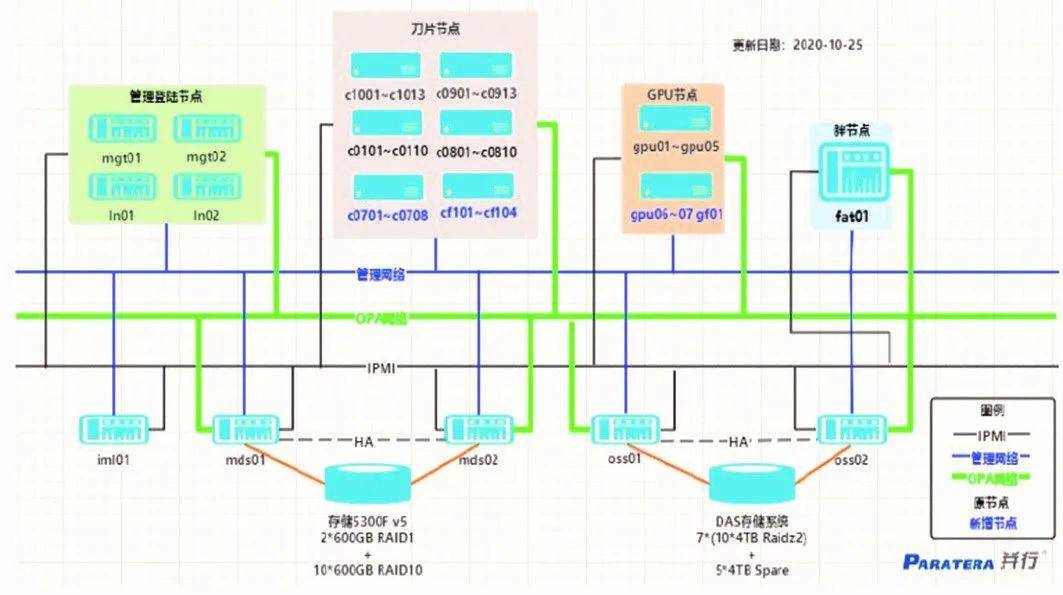 存储空间186T,CPU总核数3340核,GPU总卡数59张,总计算节点数量为85个CPU节点和10个GPU节点,平台单精度性能总算力1316.8Tflops。