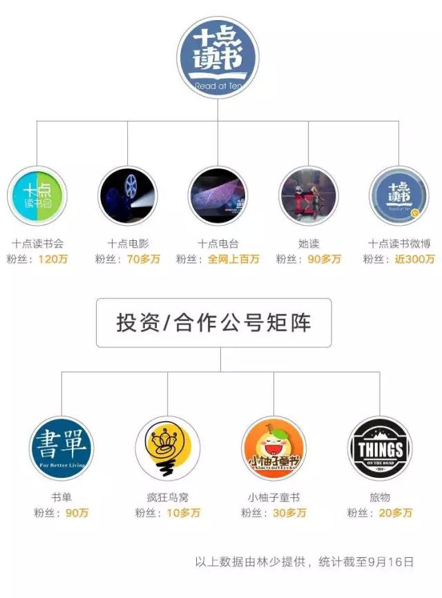 书单:粉丝量90多万,十点投资的广州谷粒传媒公司,公号以为用户推荐读书清单为主,与十点是战略合作关系。