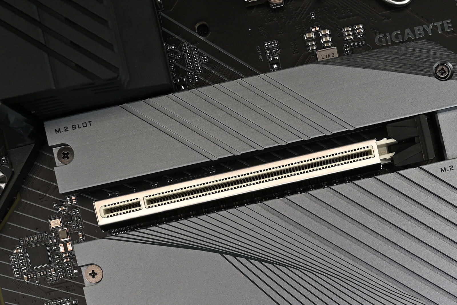 倒是PCI-E 4.0宽裕以后,PCI-E 4.0 x4超高速SSD有了好去处。技嘉小雕Z690 AORUS ELITE AX DDR4一口气提供了四个PCI-E 4.0 x4接口,均可全速运行(最接近CPU的一个插槽是直连CPU的,其他的从PCH芯片分出来)。