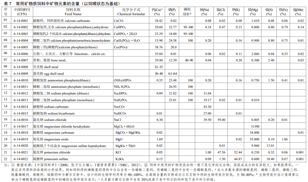 常用矿物质饲料中矿物元素的含量