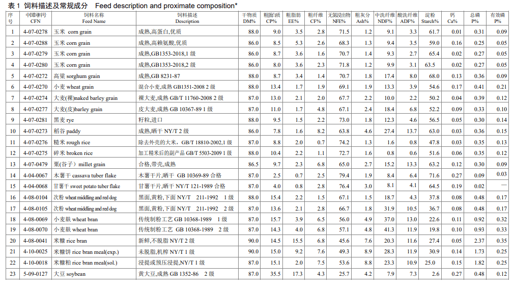 来源:中国饲料数据库,仅用于学习交流用,如涉及侵权,请联 系小编!