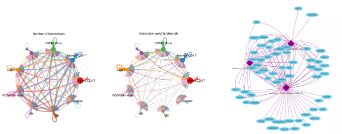 左一、二:细胞通讯图 右一:转录因子调控分析图