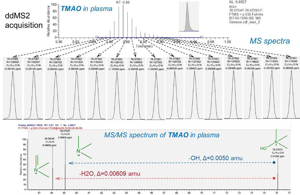 Q Exactive 质谱分析血浆中 TMAO 时实际分辨率与连续测定的质量轴稳定性
