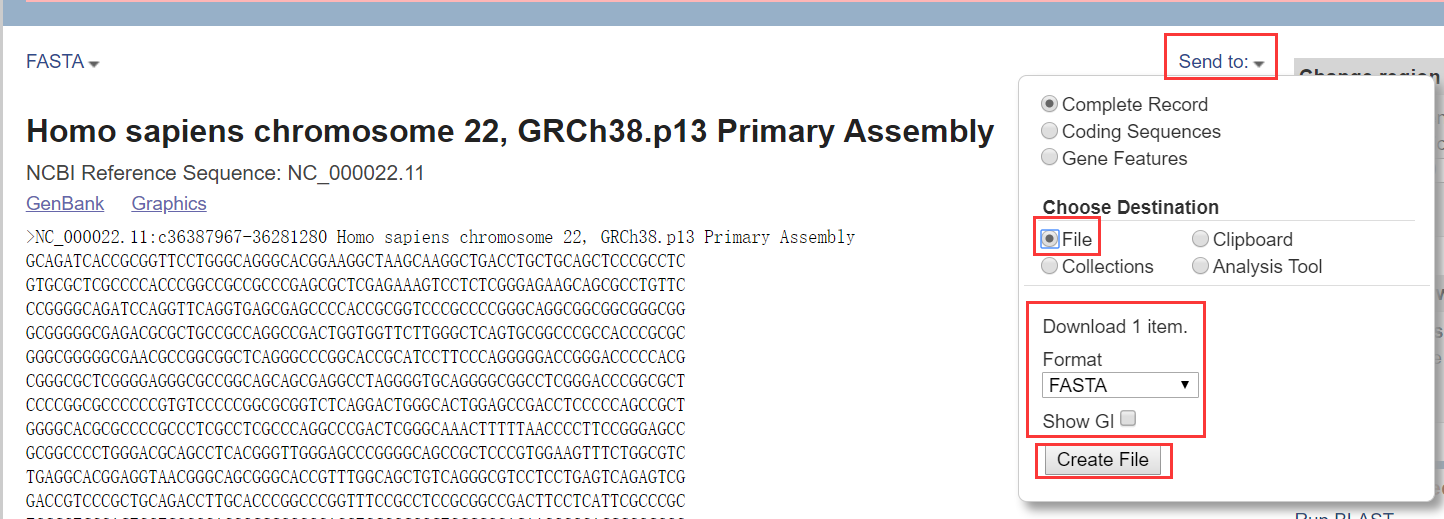(4)点击下载MYH9基因序列NCBI Reference Sequence: NC_000022.11,起个合适的文件名,推荐使用基因名或者数据库登录号;