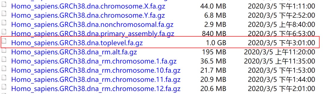 网址:ftp://ftp.ensembl.org/pub/release-100/fasta/homo_sapiens/dna/
