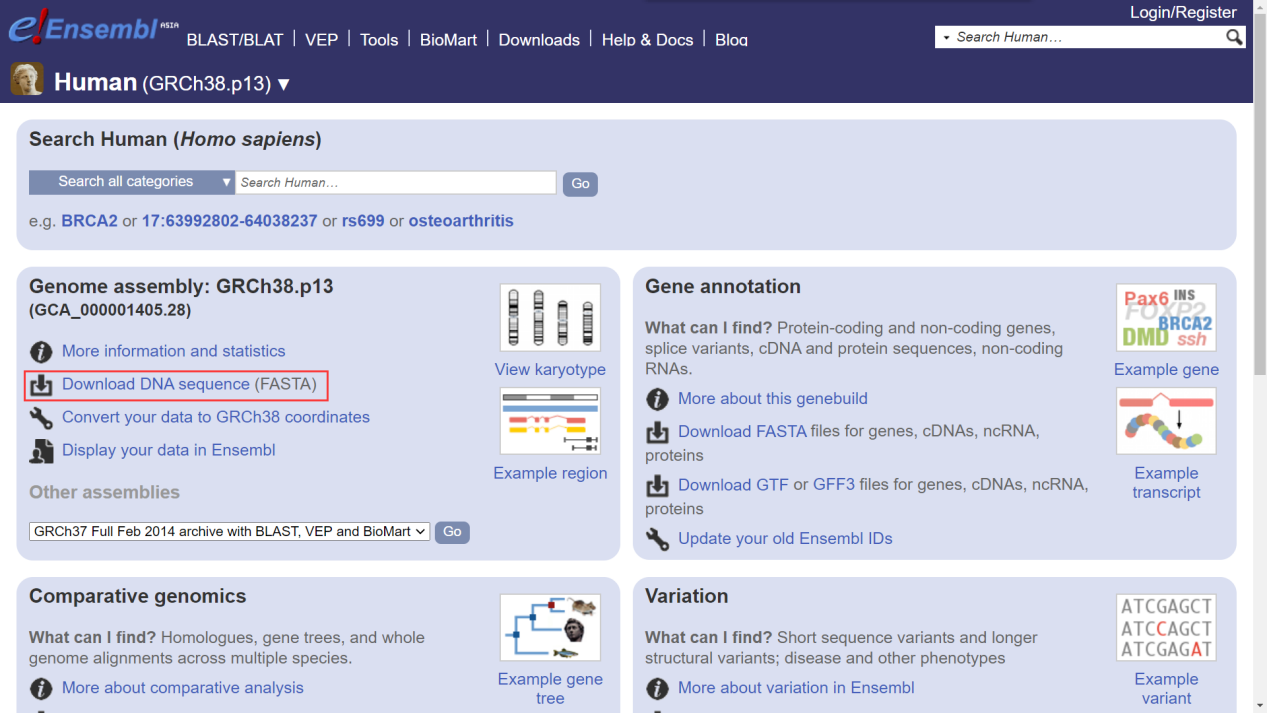 (1)使用浏览器登录数据数据库:https://asia.ensembl.org/index.html